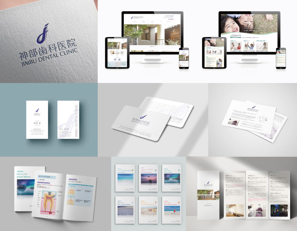 ロゴに託したビジョンを、名刺や診察券・パンフレット等の印刷物、看板や外装内装等全てに一貫性を持って反映させることで、患者さんが無意識のうちにそれを体感することができているようです。