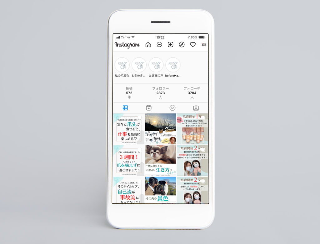 Instagramにおいても色味やフォント・レイアウトを工夫し、素敵な世界観を演出。