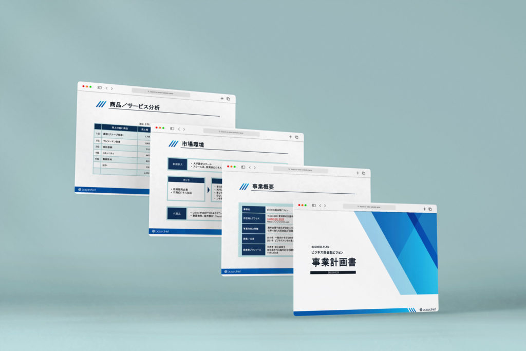 3点目の「事業計画書」。これも文句無しで期待以上の品質です。事業を多角的に分析し「何をすべきか」を明確に把握することができるようになります。ここ、特にデザイナーが苦手なところ。数字大嫌い、計画性ゼロだった自分も、お陰様で向き合うハードルがグッと下がりました。