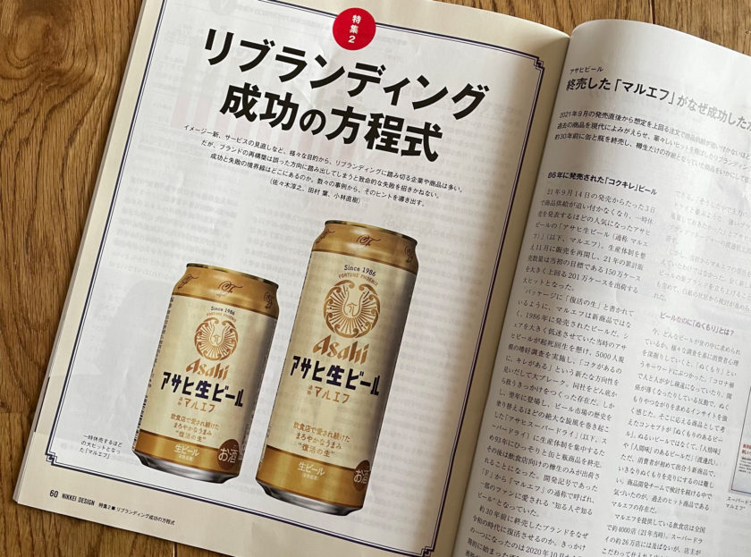 日経デザイン7月号の特集記事に掲載されている、アサヒ生ビール(通称 マルエフ)のリブランディング成功例。 約30年前に終売した商品を令和の時代に見事に復活させ、その人気ぶりは一時休売が発表されるなど記憶に新しいところです…